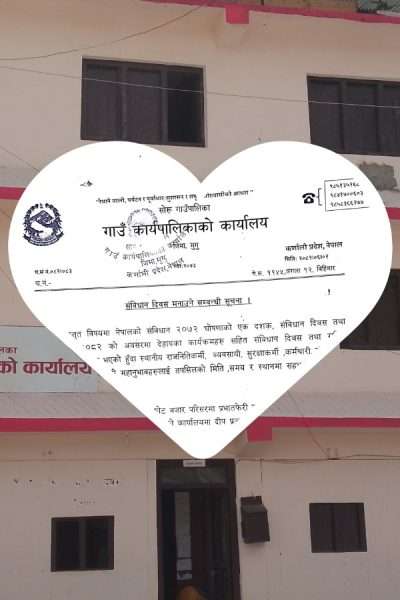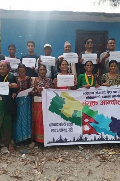 बाजुरा — बाजुराको बुढिनन्दा नगरपालिकाले संविधानको रक्षा र राष्ट्रिय सार्वभौमिकताको पक्षमा जोड दिँदै बिहीबार दिउँसो संयुक्त शान्तिपूर्ण र्याली सम्पन्न गरेको छ। “संबिधानको रक्षा गरौँ, बिदेशी दलाल होसियार, हामी शैनिक शासन मान्दैनौं, बिधिको शासन कायम गर, सिमानामा सुरक्षा कडाई गर, GenZ का उपयुक्त माग पूरा गर, रास्ट्रपतिलाई सार्बजनिक गर” जस्ता नारा दिँदै निकालिएको र्याली कोल्टी बजारको […]