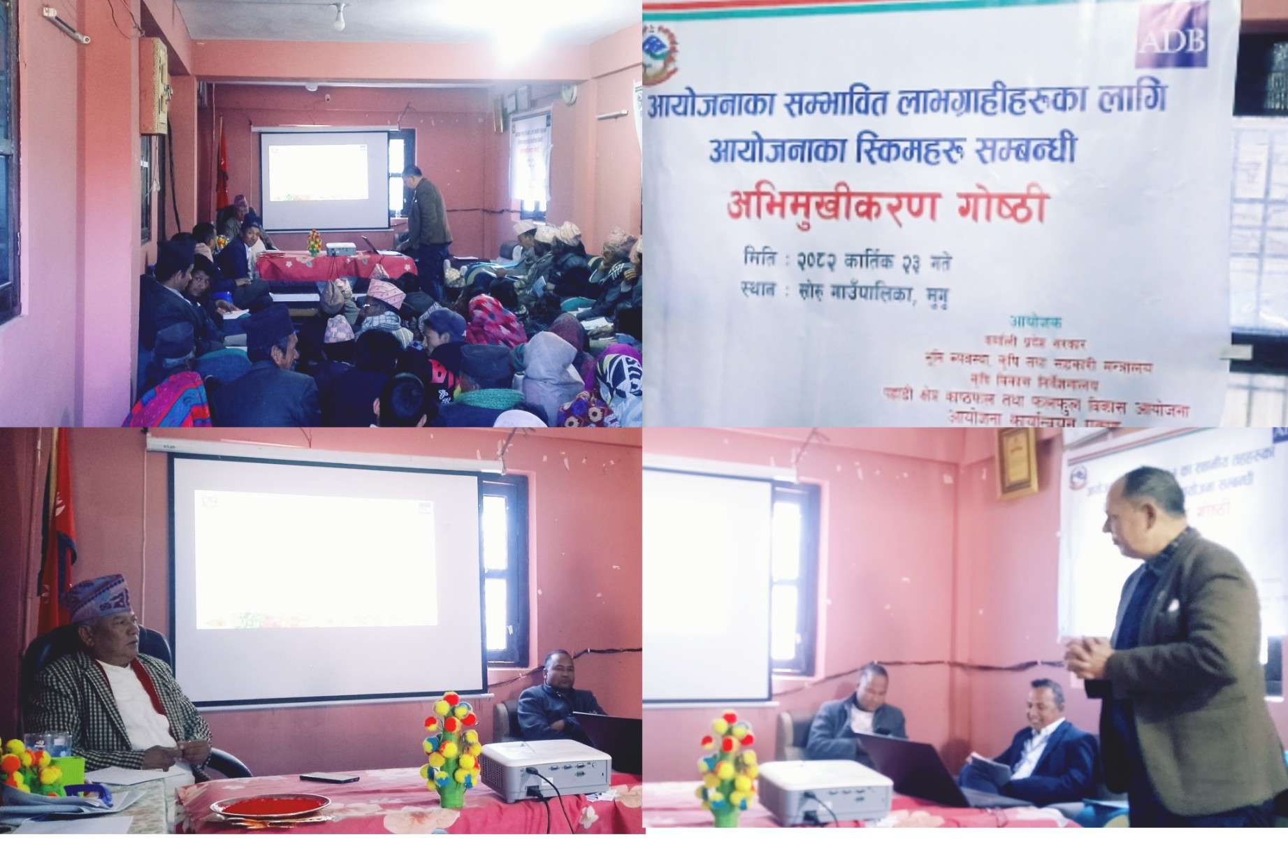 मुगु । कर्णाली प्रदेश सरकारको भूमि व्यवस्था, कृषि तथा सहकारी मन्त्रालय अन्तर्गतको कृषि विकास निर्देशनालय, पहाडी क्षेत्र काष्ठफल तथा फलफूल विकास आयोजना कार्यान्वयन इकाई बिरेन्द्रनगर सुर्खेतको आयोजनामा मुगुको सोरु गाउँपालिकामा अभिमुखीकरण गोष्ठी सम्पन्न भएको छ।