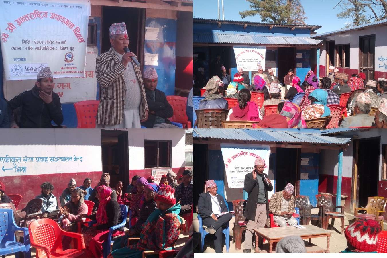 मुगु — “अपाङ्गता समावेशी समाजको प्रवर्द्धन, सामाजिक उन्नतिको सम्बर्द्धन” भन्ने मूल नारासहित ३४औँ अन्तर्राष्ट्रिय अपाङ्गता दिवस सोरु गाउँपालिकामा आज विविध कार्यक्रमसहित सम्पन्न गरिएको छ। कार्यक्रममा अपाङ्गता भएका व्यक्तिहरूको हक–अधिकार, पहिचान, समावेशिता र राज्यका सेवासुविधामा पहुँच सुनिश्चित गर्न स्थानीय तहले महत्वपूर्ण भूमिका खेल्नुपर्ने आवश्यकता औँल्याइएको छ।